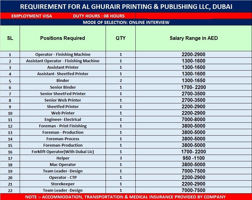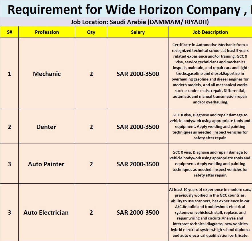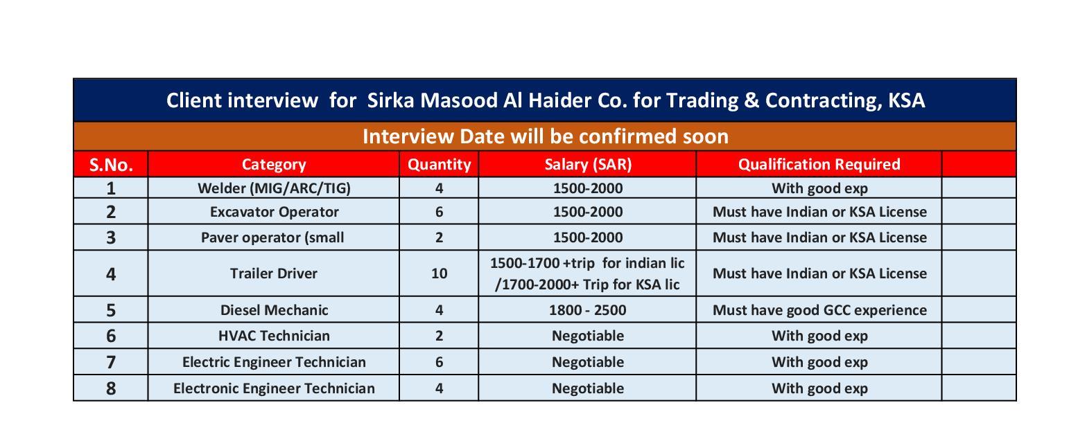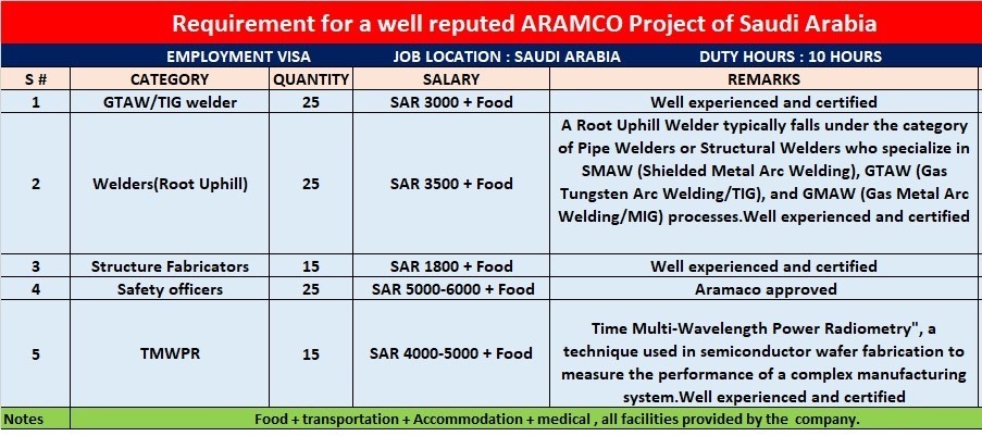 Urgent Requirement for NEOM Project, Saudi Arabia
