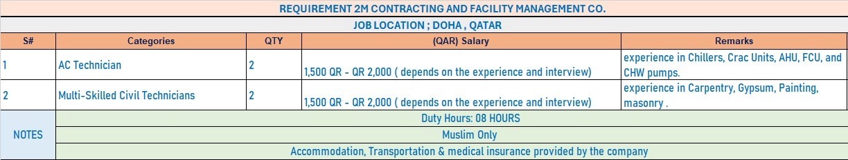 Vacancy for Fixpert Contracting LLC,DUBAI